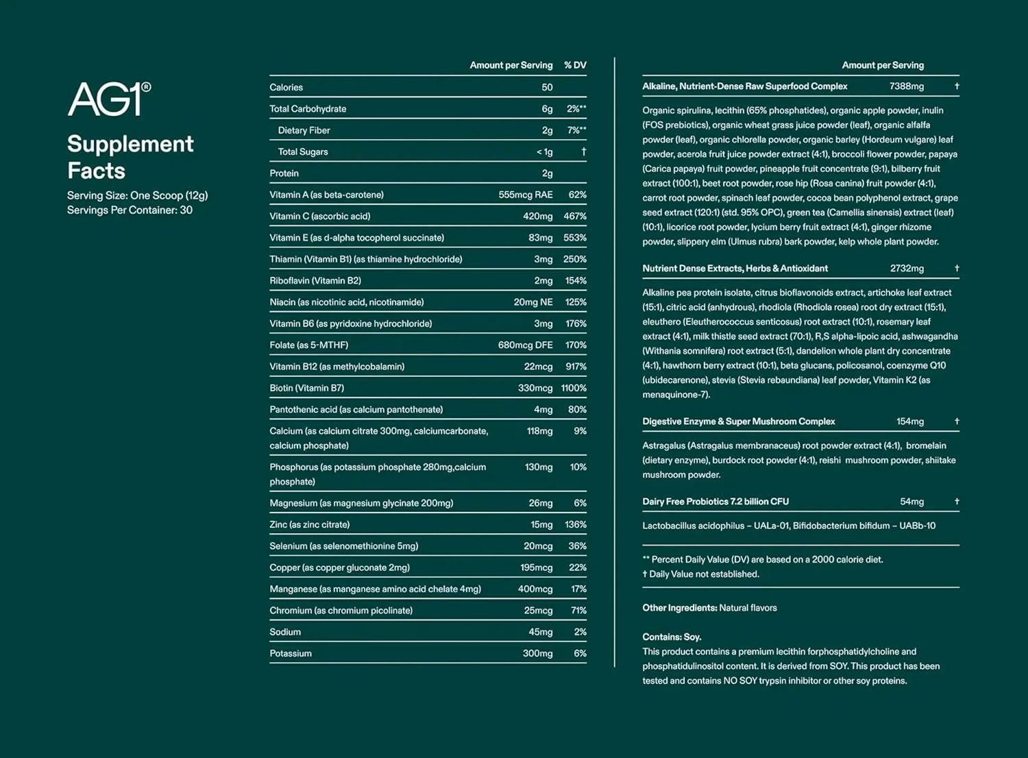 The AG1 powder contains 75 carefully selected ingredients designed to support various aspects of health. Each scoop of this greens supplement provides nutrients that target immune function, energy production, gut health, and recovery. Athletic Greens AG1 has gained popularity because it simplifies the morning routine—instead of taking numerous individual supplements, users can drink AG1 and get broad-spectrum nutritional coverage. The formula includes whole food-sourced ingredients, superfoods, and botanical extracts that work synergistically to promote wellness.