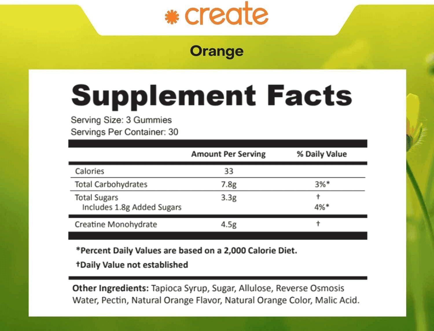 Create Creatine Monohydrate Gummies for Men & Women, (Orange) 90 Count